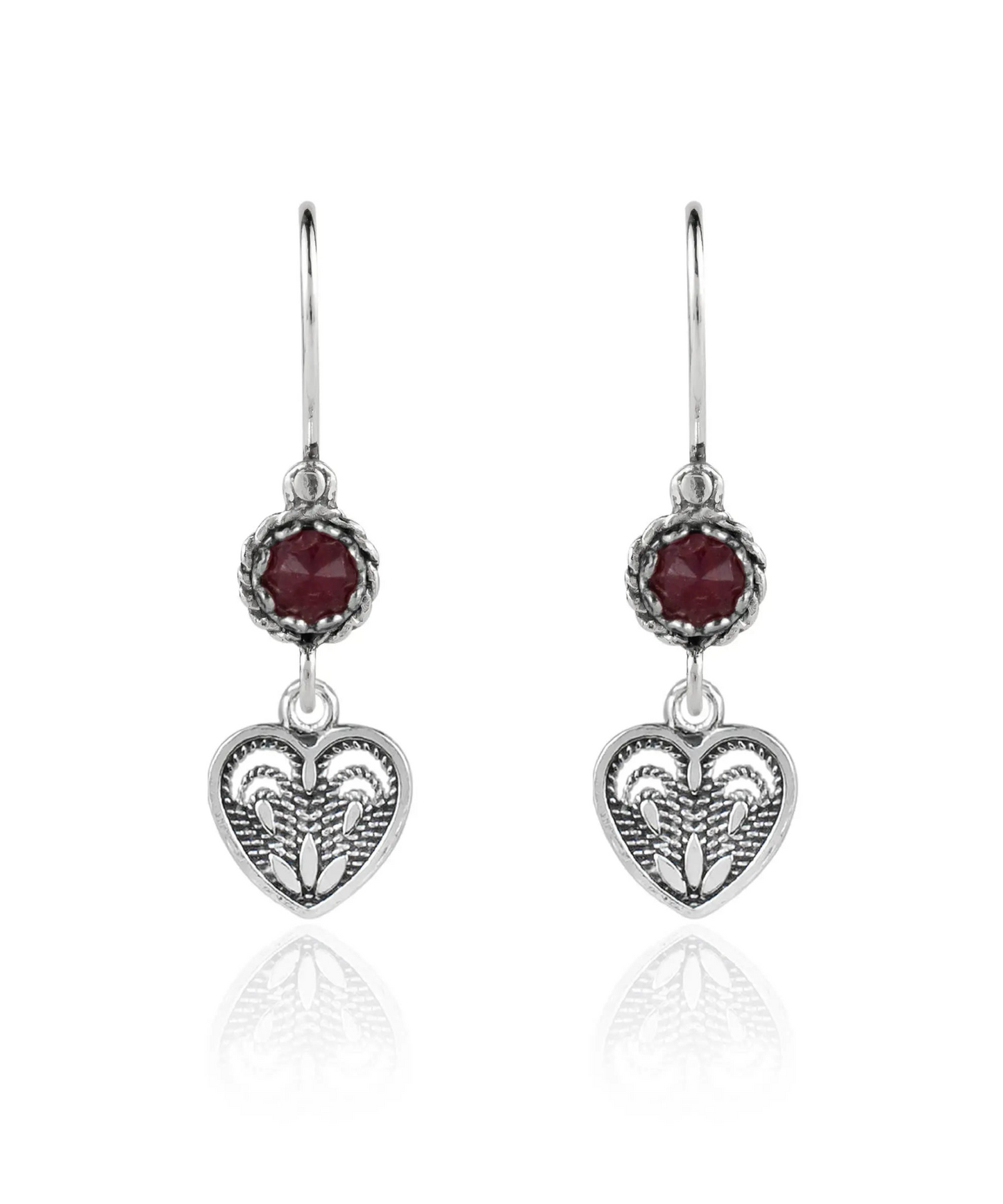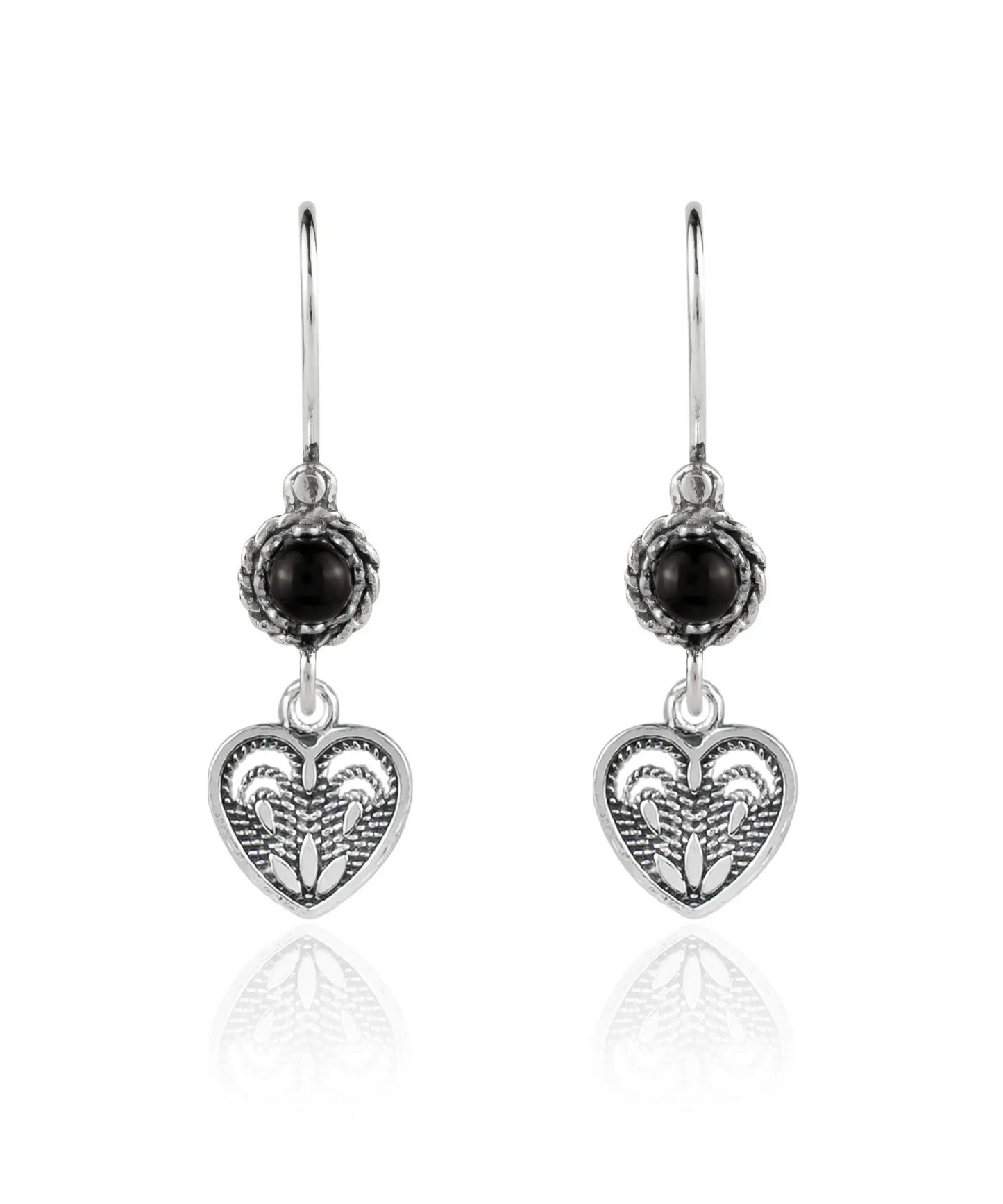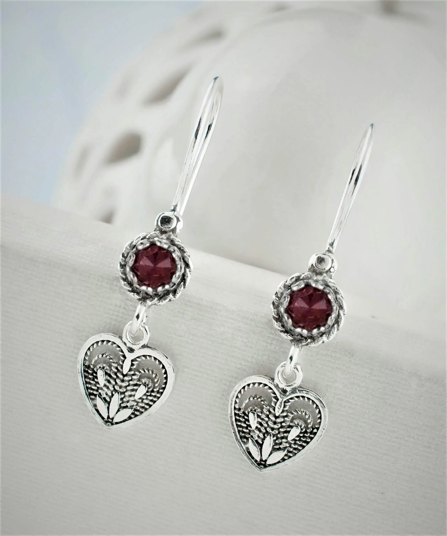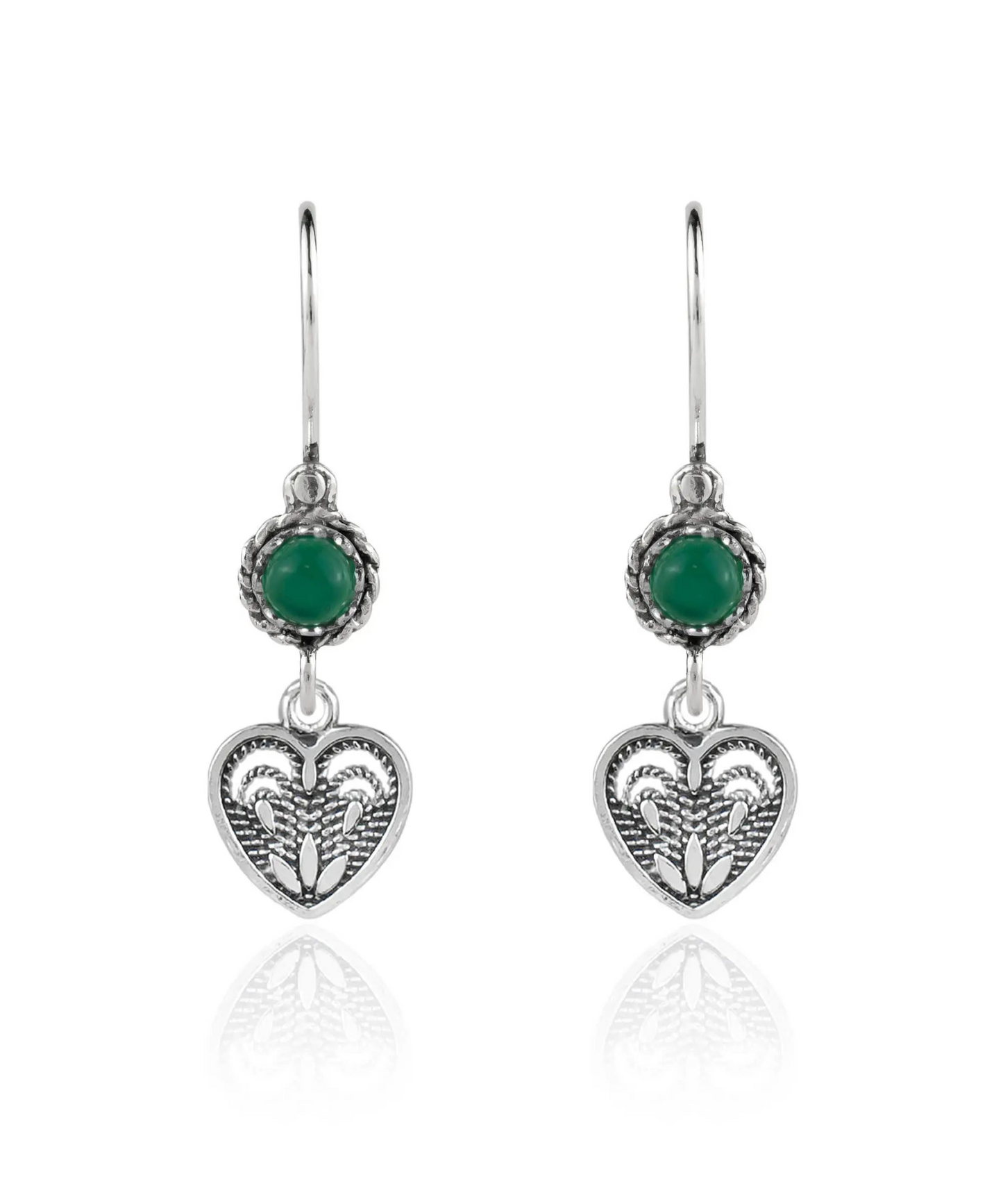 Sterling Silver Filigree Art Heart Shaped Gemstone Women Dangle Earrings