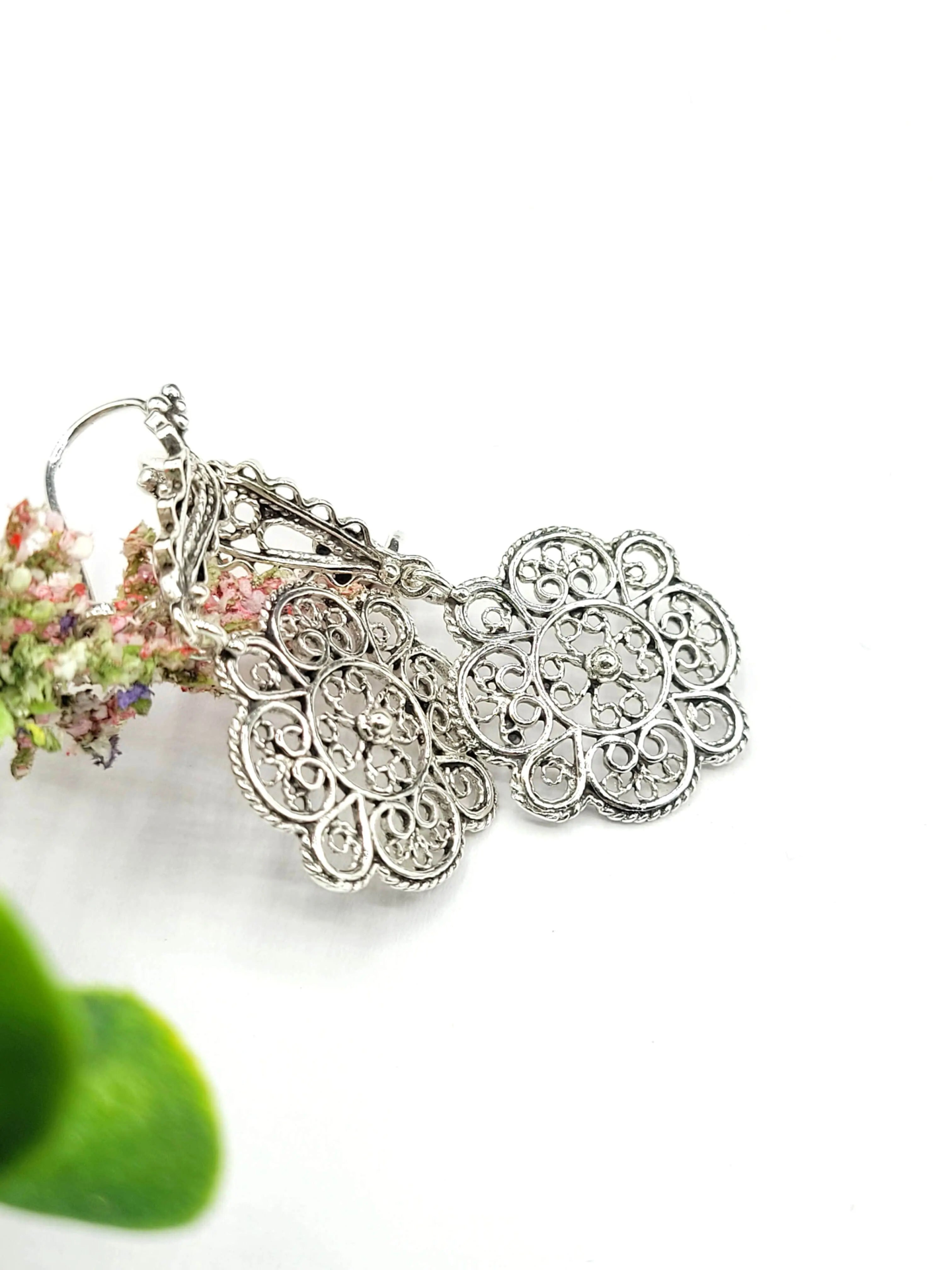 Introducing the stunning and unique 925 Sterling Silver Filigree Art Sun Figured Women Dangle Drop Earrings. These earrings are handmade by skilled artisans using high-quality 925 sterling silver, with intricate filigree art in a beautiful sun figure pattern.