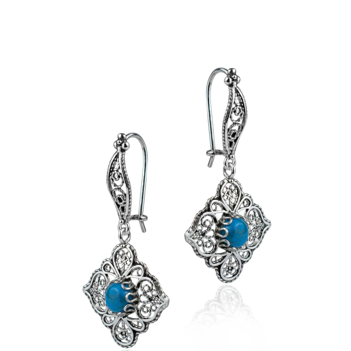 With their intricate filigree design and beautiful turquoise gemstones, these earrings are sure to make a statement and become a cherished addition to any jewelry collection.