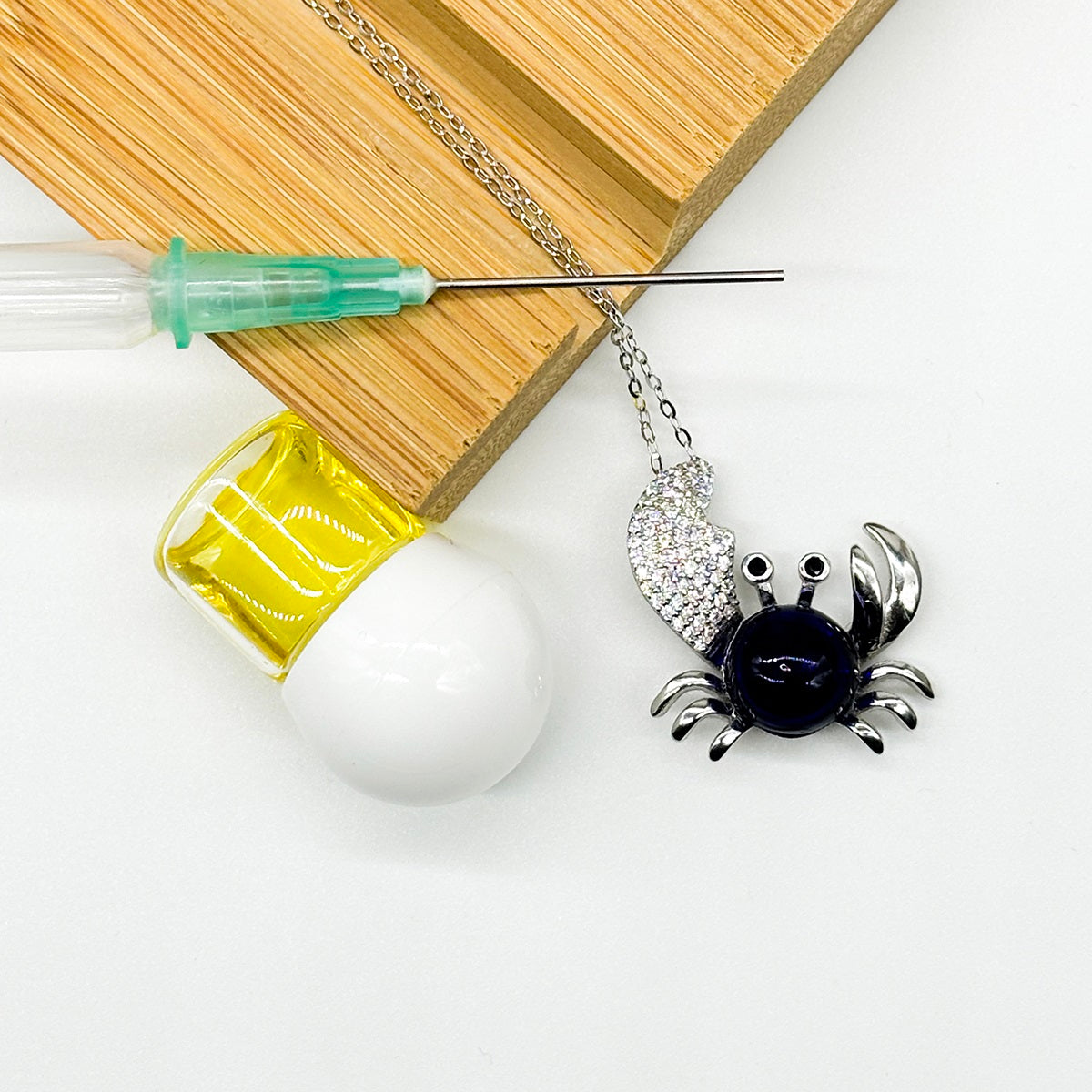 Sterling Silver King Crab Aroma Necklace - Navy | Energy & Healing | Diffuse on the go