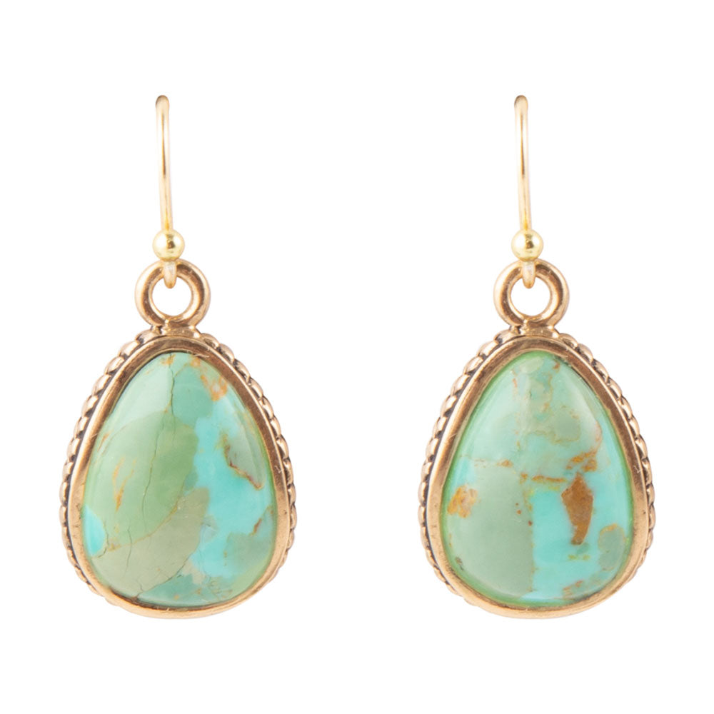 Embrace the beautiful energy of turquoise with these stunning Teardrop Turquoise Drop Earrings. Crafted with genuine turquoise set in a braided bronze bezel, these earrings feature a unique 1.5-inch design and will bring beauty and adventure to your everyday look. Get ready to sparkle and shine! 😍😍