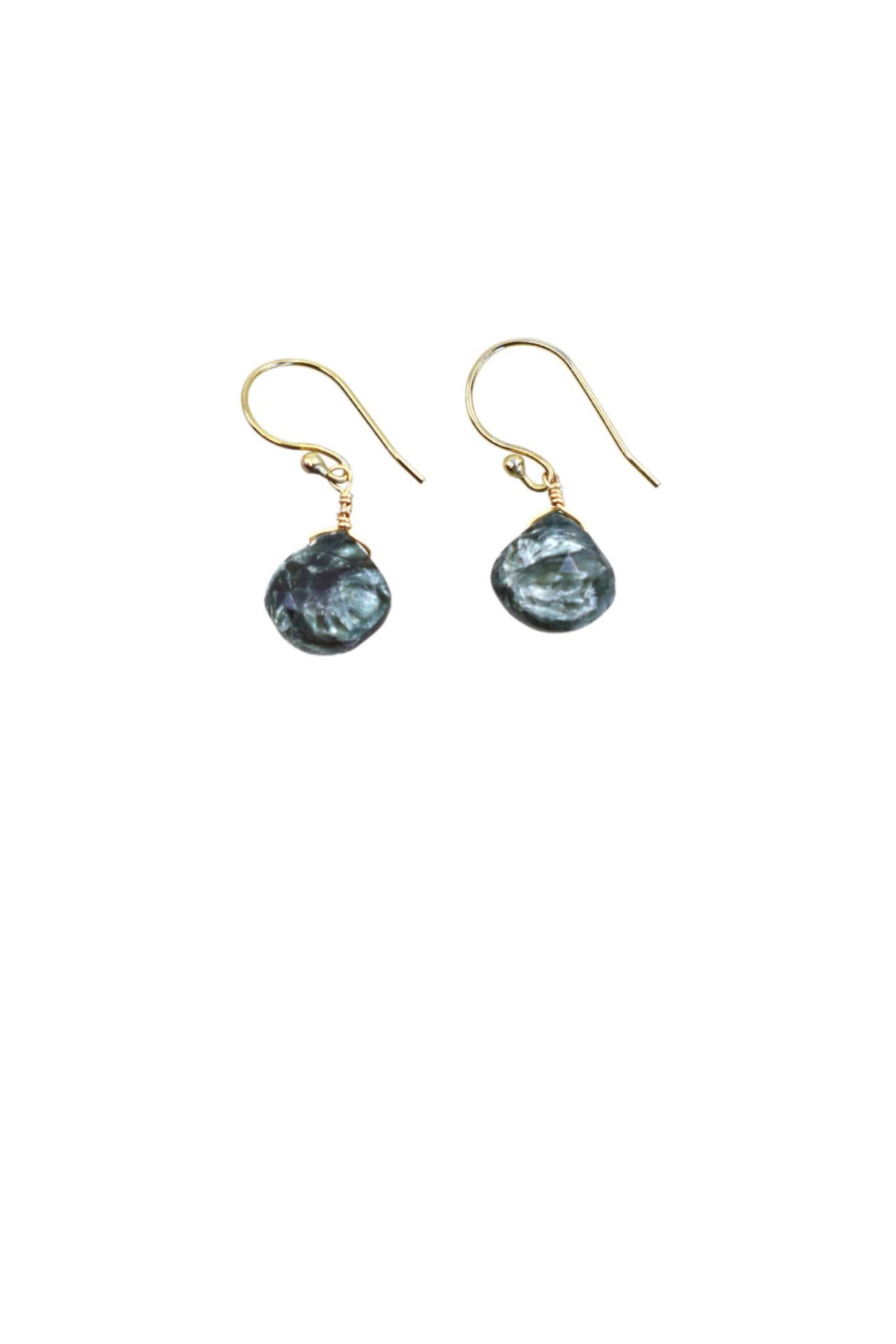 Serpentine heart shaped stones hand wrapped earrings lightweight and delicate. Stones are wrapped in 14k gold filled wire.