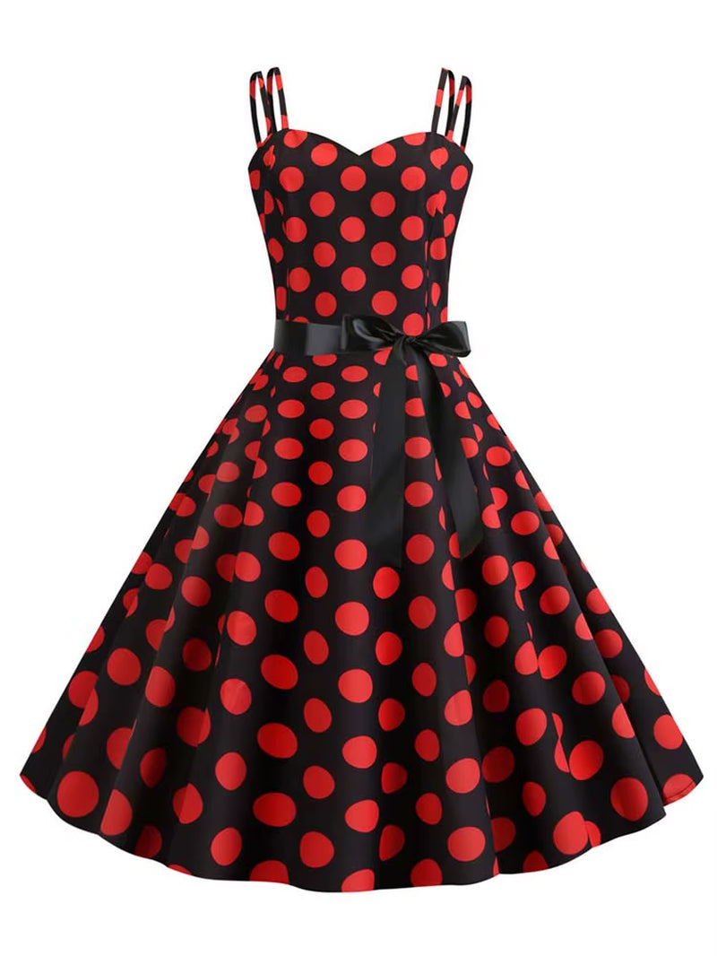 Women Summer Dress Robe Vintage 50S 60S Big Swing Party Rockabilly Dress Sexy Spaghetti Strap Polka Dot Vestidos