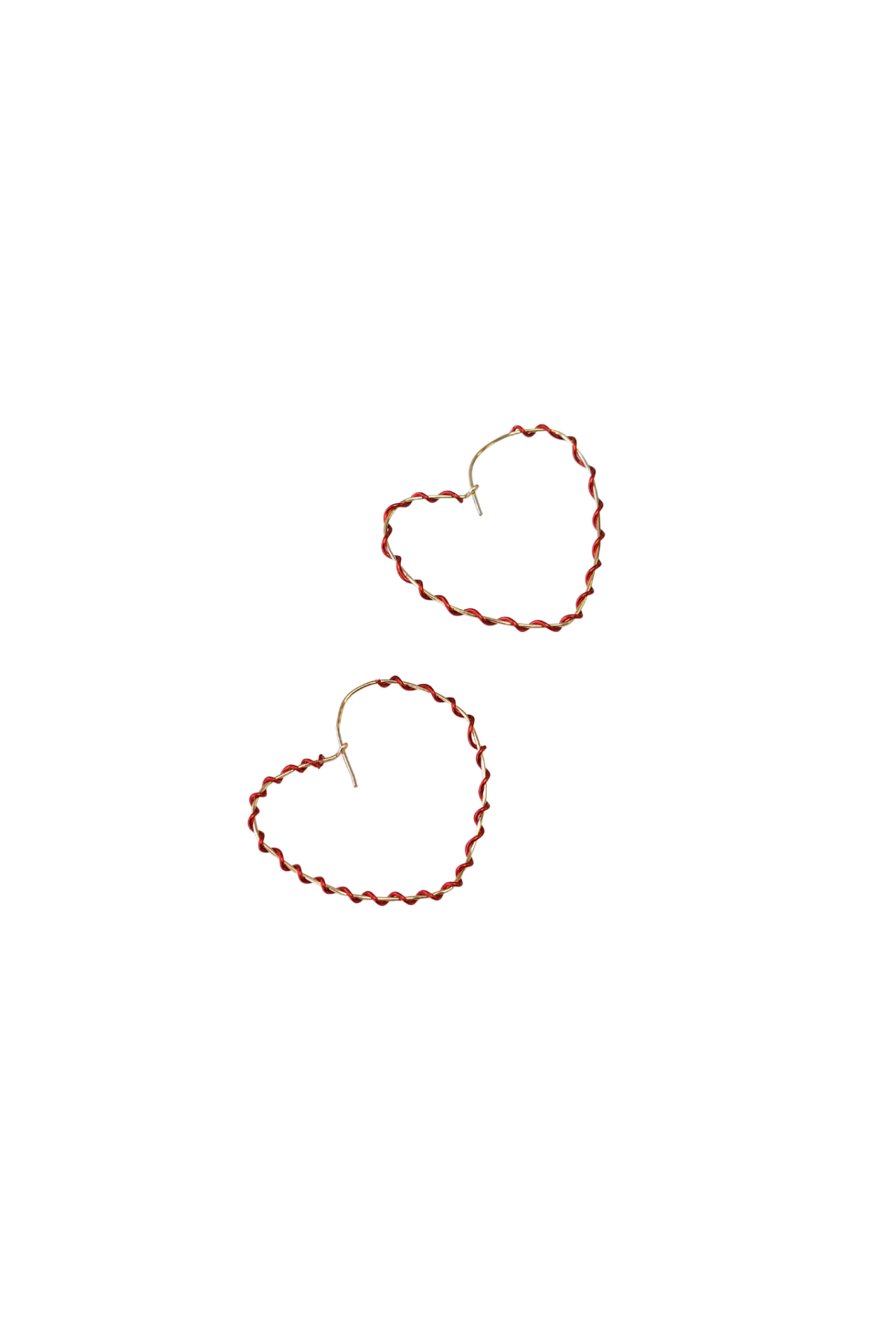 Wrapped Around the Heart Earring in Gold with Red Wrap.
